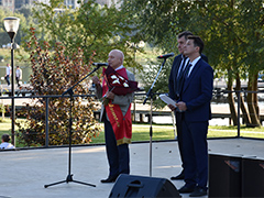 Подарок от депутата Дмитрия Швецова также получил вице-президент «Союза танцевального спорта Воронежской области» Александр Осипов. В этом году Александр Николаевич отмечает 40-летний юбилей преподавания бальных танцев.После завершения торжественной части на сцене амфитеатра парка выступили солисты клуба «Восток», образцового вокального ансамбля «Карнавал» и танцоры-бальники. Во время праздника работала выставка художественных работ ветерана Вооруженных сил, подполковника запаса Александра Захарова. Финалом праздника стал концерт ансамбля песни и пляски «Донская застава» регионального Пограничного управления ФСБ России.