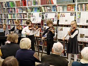 В понедельник, 2 октября, в модельной библиотеке № 32 им. Г.Н. Троепольского состоялось торжественное открытие выставки «Героическая история края из уст в уста», на которой представлены портреты ветеранов Великой Отечественной войны, участников битвы за Воронеж и фотографии их потомков, героев труда.Открыл встречу Ансамбль скрипачей «Акцент» Воронежской специальной музыкальной школы (колледжа) под руководством Ирины Бортниковой, солистом выступил лауреат международных и всероссийских конкурсов Игнат Попов. Партия фортепиано прозвучала в исполнении дипломанта Всероссийских и Международных конкурсов Елены Подгорновой. Музыканты виртуозно исполнили отрывки из известных произведений П.И. Чайковского, П. де Сарасате, Д. Крамера и Е. Медведовского.