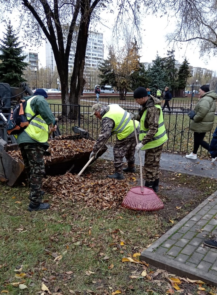 В Коминтерновском районе сотрудники комбината благоустройства продолжают уборку опавшую листву.Во время дождя она может послужить причиной засора ливневой канализации и создать угрозу подтоплений.