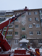 Управляющие компании Железнодорожного района проводят работу по очистке кровель крыш домов от снега и наледи