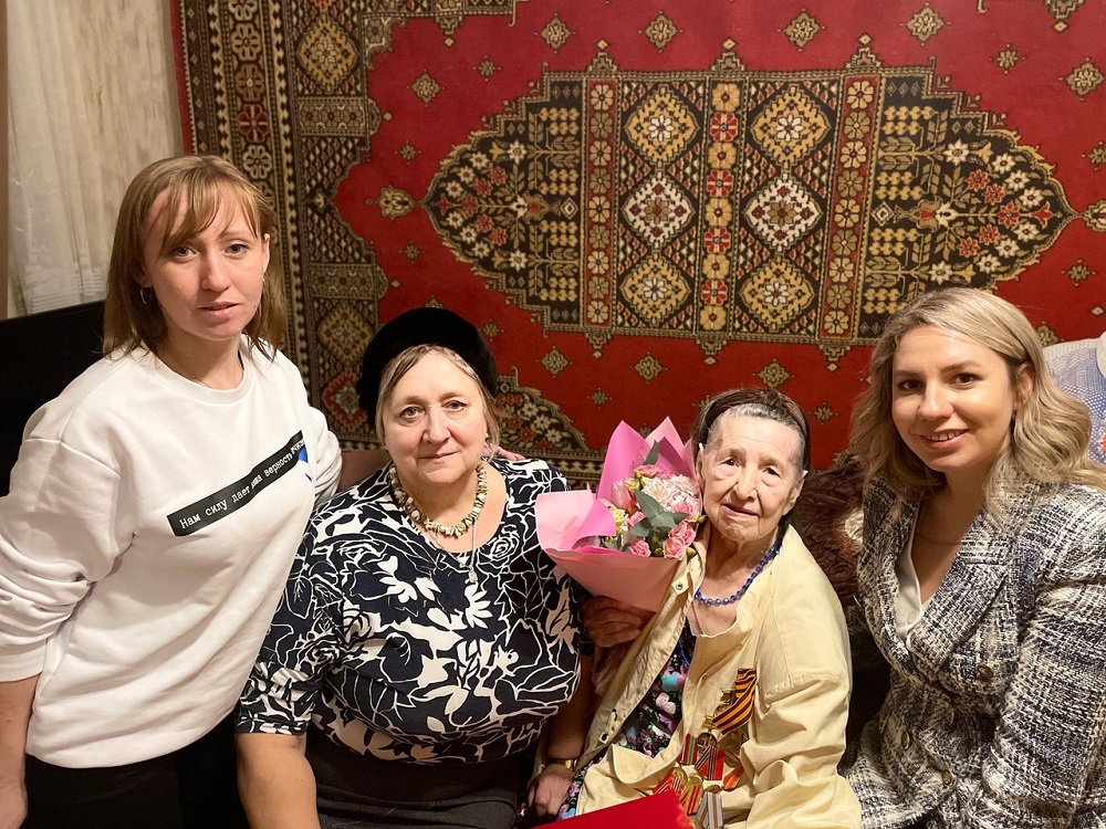 Помимо подарков и цветов сотрудники управы вручили этим героическим женщинам Почетные знаки «В честь 80-летия полного освобождения Ленинграда от фашистской блокады».