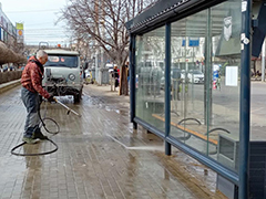 В Ленинском районе после зимы приступили к отмыванию 69 остановочных павильонов общественного транспорта