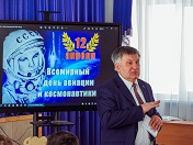 12 апреля председателем районного отделения всероссийской общественной организации ветеранов (пенсионеров) войны, труда, Вооруженных Сил и правоохранительных органов, полковником запаса, летчиком с более чем 30-летним стажем Валерием Лихачевым была проведена встреча с учащимися школы № 5 им. К.П. Феоктистова, посвященная Дню космонавтики.Участники встречи поговорили о галактике, первом человеке в космосе и важных человеческих качествах. В ходе беседы Валерий Митрофанович рассказал и многим известную историю о полете Юрия Гагарина в космос.