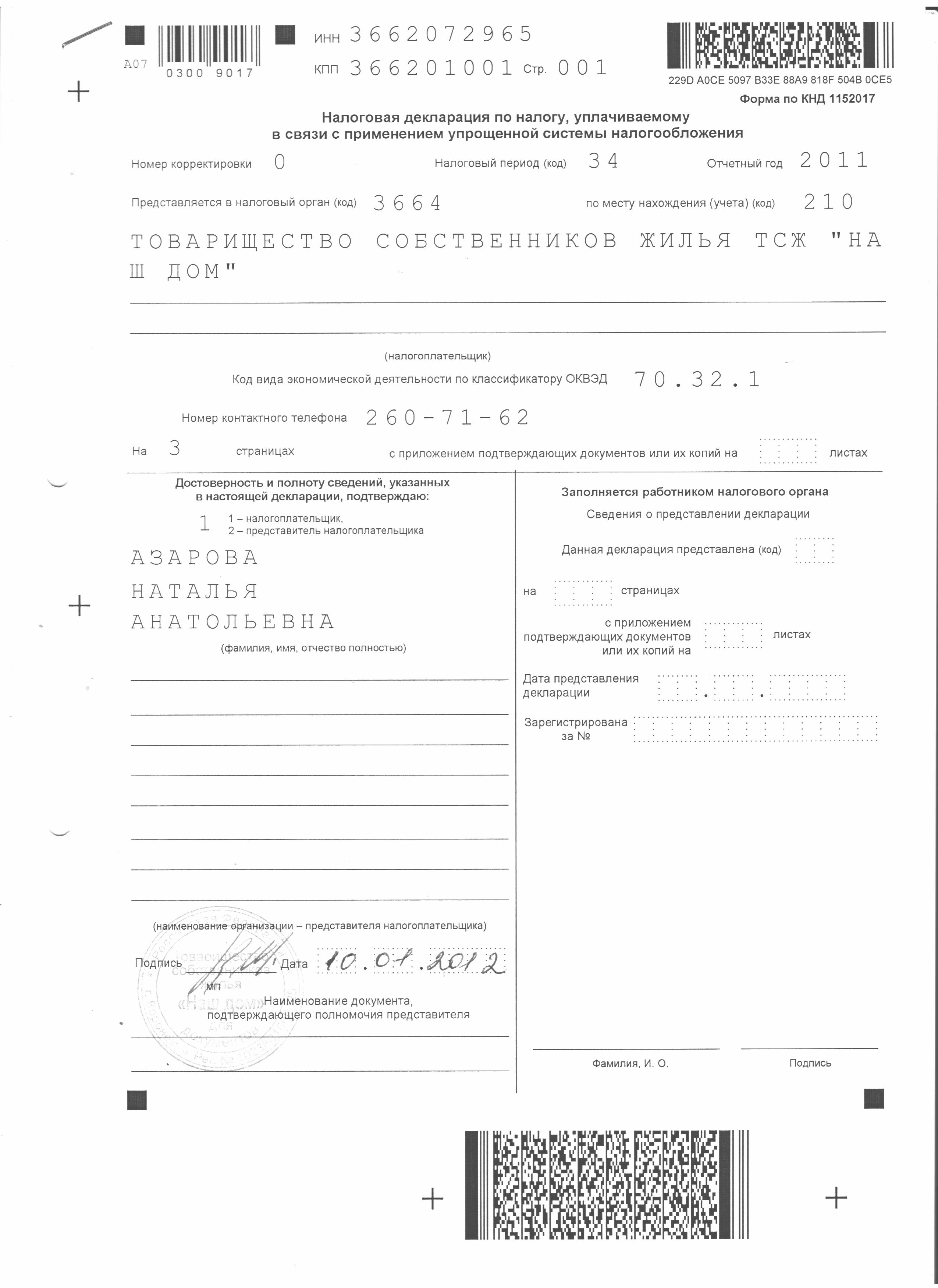 13.04.2012Председатель правления ТСЖ «Наш дом» - Азарова Н.А.