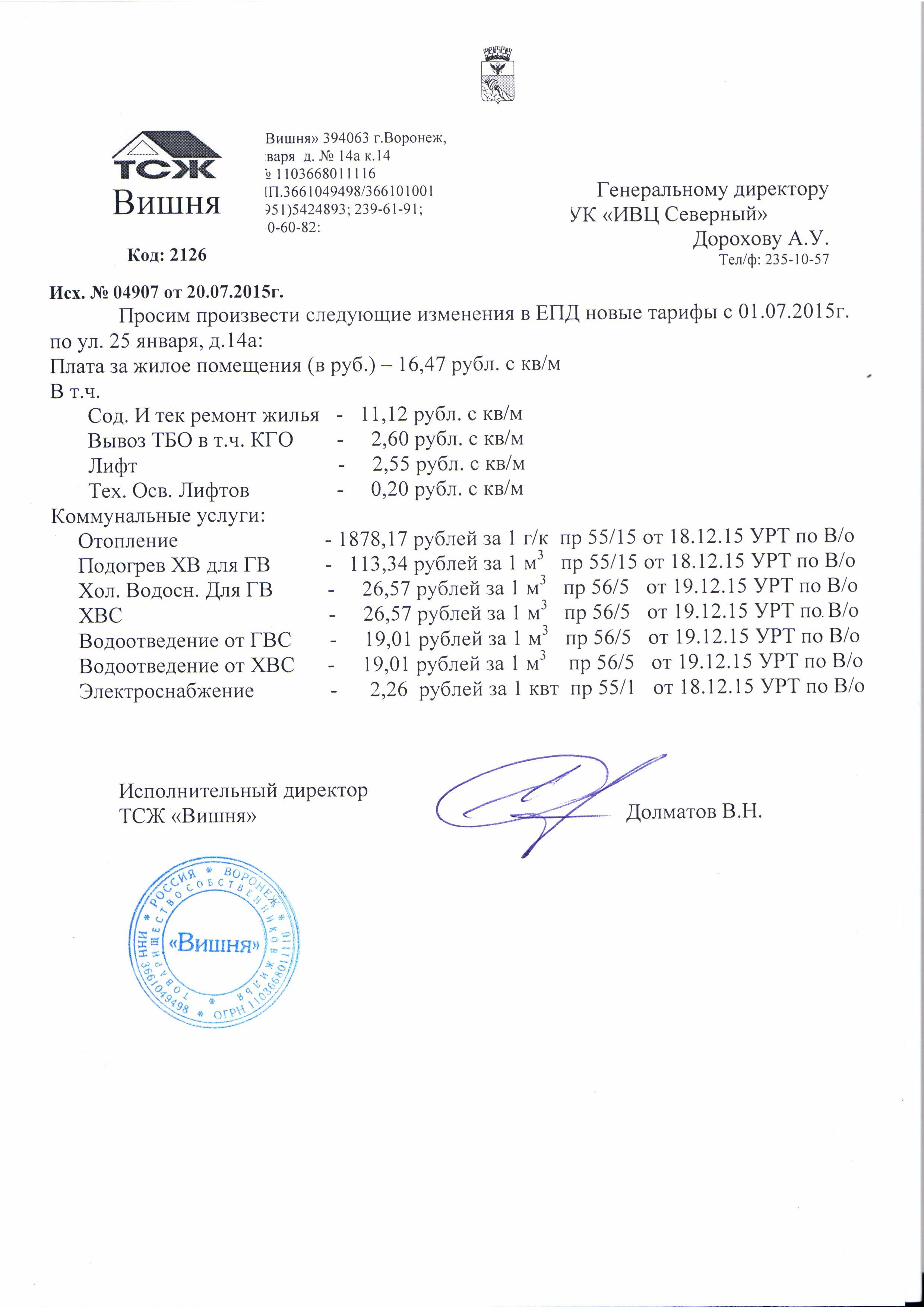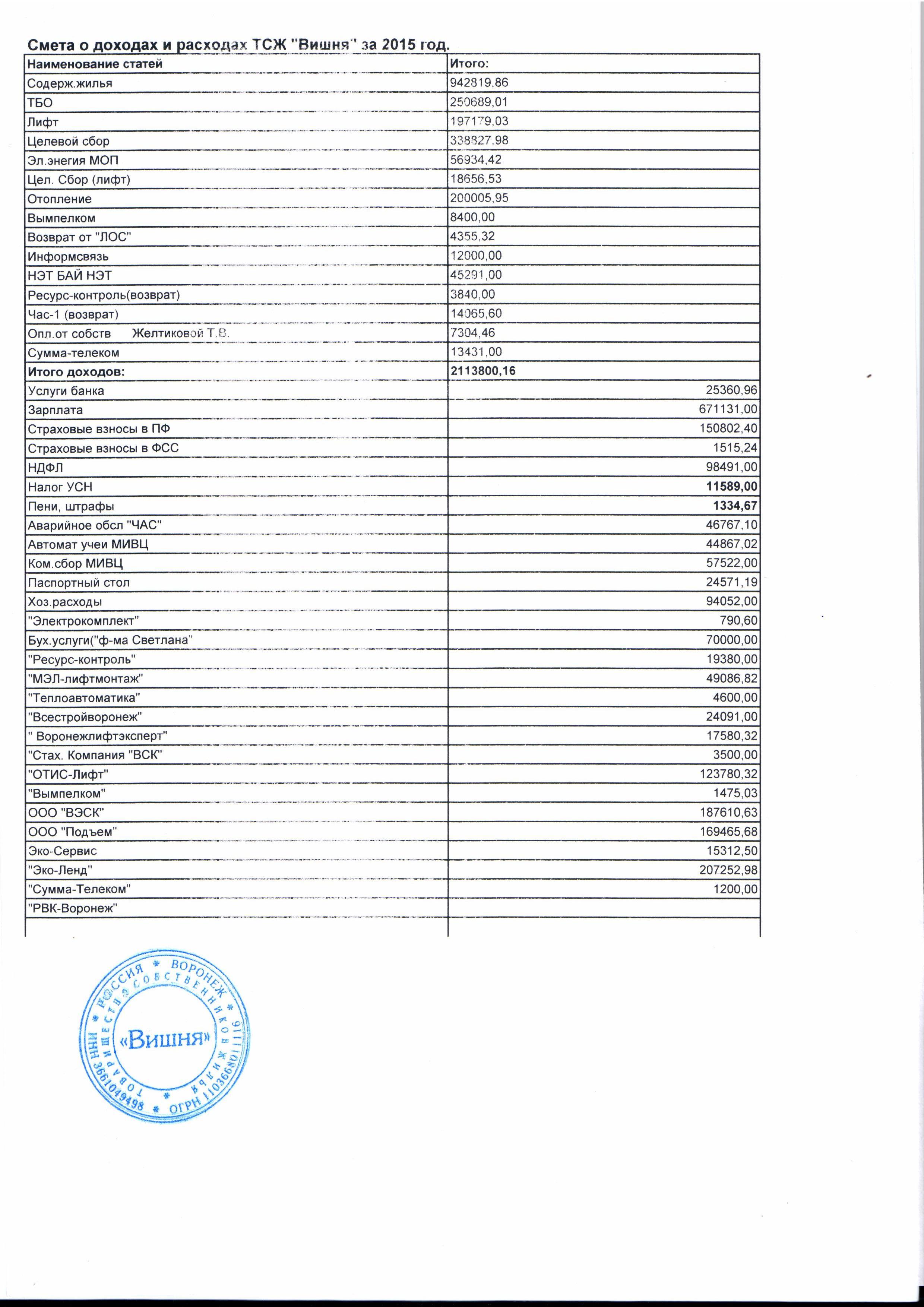 16.05.2012Председатель правления ТСЖ «Вишня» - Скворцова Галина Валентиновна