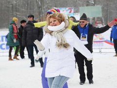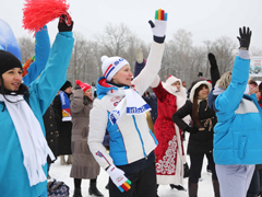 После теплых напутствий, спортсмены оправились на лыжню, а болельщикам предложили поучаствовать в фитнес-разминке. Движения показывала автор популярного проекта «Зарядка» Надежда Панарина. Зрители с удовольствием повторяли упражнения, а потом выстроились в огромный круг и водили хоровод. После физической нагрузки можно было подкрепиться – на стадионе работала полевая кухня.