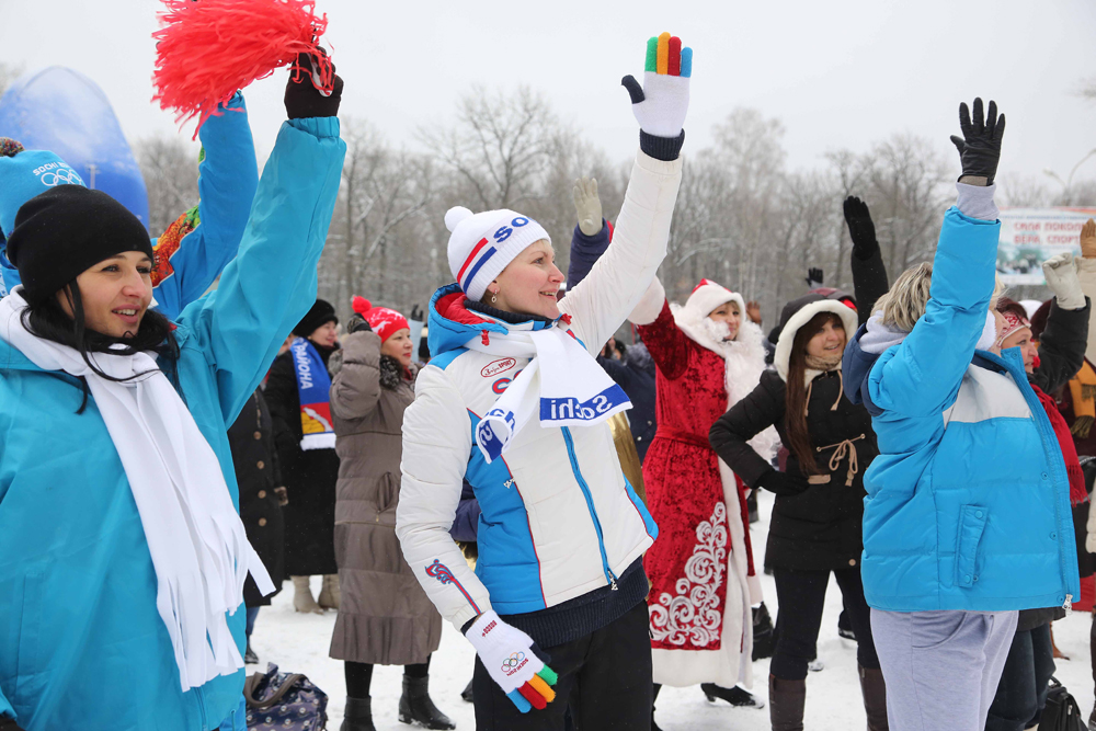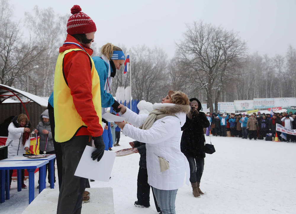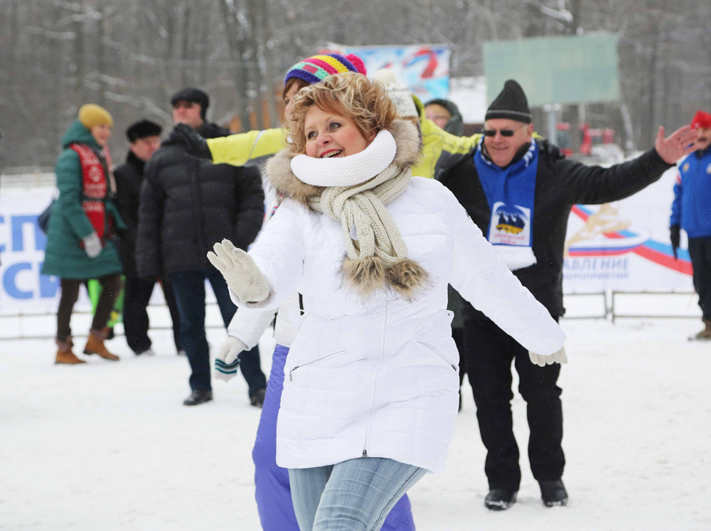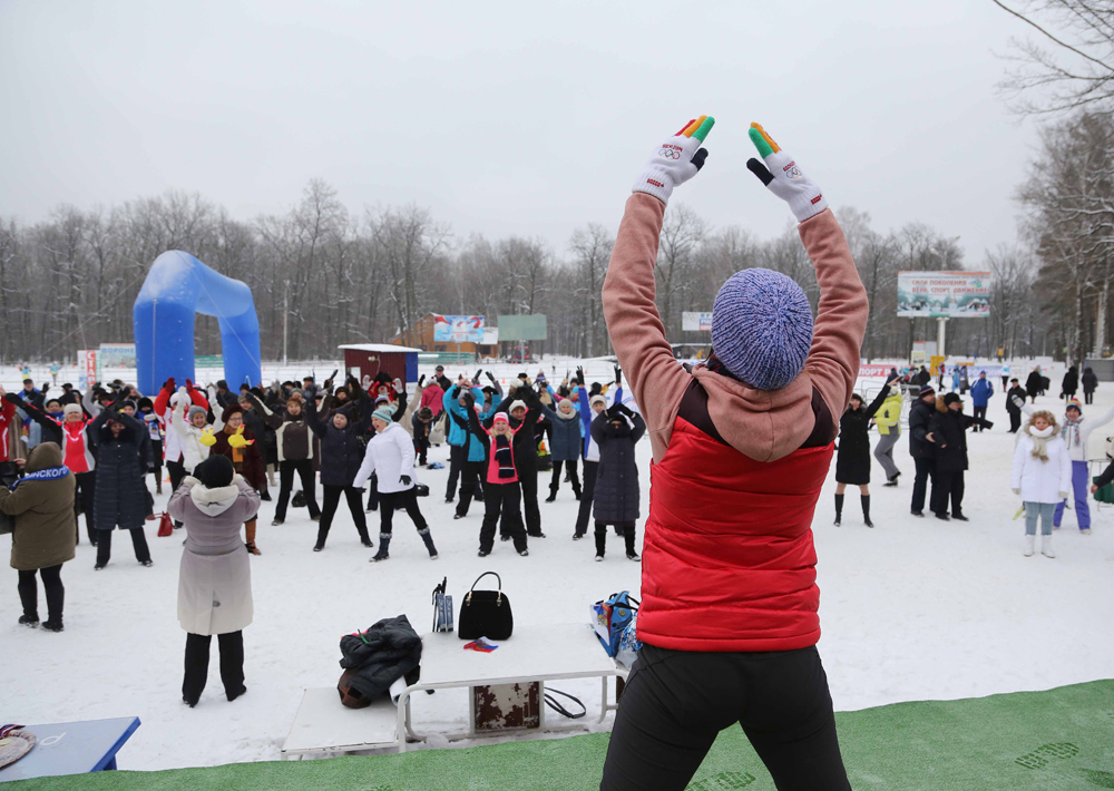 После теплых напутствий, спортсмены оправились на лыжню, а болельщикам предложили поучаствовать в фитнес-разминке. Движения показывала автор популярного проекта «Зарядка» Надежда Панарина. Зрители с удовольствием повторяли упражнения, а потом выстроились в огромный круг и водили хоровод. После физической нагрузки можно было подкрепиться – на стадионе работала полевая кухня.
