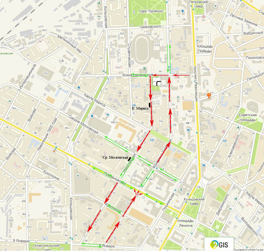 Кроме того, экспертному сообществу и представителям общественности для обсуждения был предложен вариант введения одностороннего движения и по участкам улиц Никитинской и Фридриха Энгельса (от Средне-Московской до Комиссаржевской).