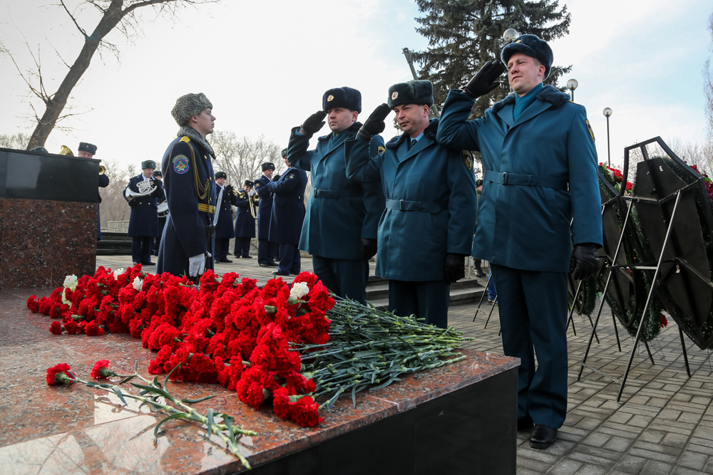 Делегацию от городской администрации возглавил мэр Воронежа Александр Гусев. После возложения венков и цветов рота почетного караула произвела оружейный залп и зазвучал гимн Российской Федерации.