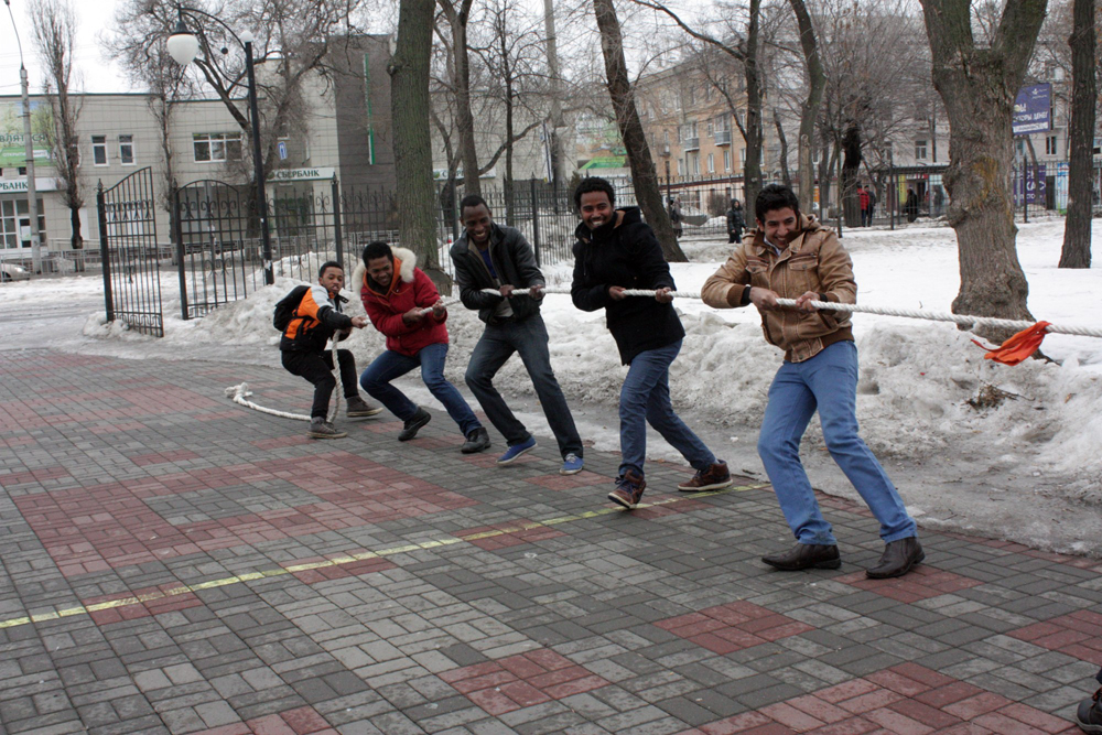 Студенты Воронежского государственного архитектурно – строительного университета всегда отличались спортивной подготовкой, активным участием в подобных акциях, а их иностранные сокурсники очень даже профессионально овладели нашими национальными видами развлечений.