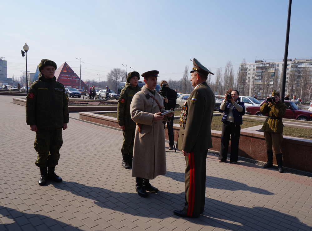 В Коминтерновском районе на мемориальном комплексе Памятник Славы прошла торжественная церемония передачи капсулы с землей, взятой с мест сражений.