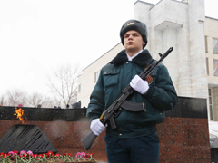 Завершилась торжественное построение минутой молчания и возложением цветов к мемориалу. После этого на площади перед музеем осталась пара часовых – каждая смена дежурит по 15 минут.