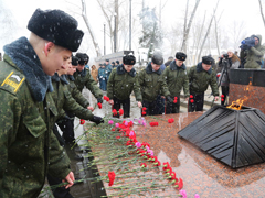 Право первыми заступить в Почетный караул на мемориальном комплексе Чижовский плацдарм, предоставлено курсантам Воронежского института Государственной противопожарной службы МЧС России: