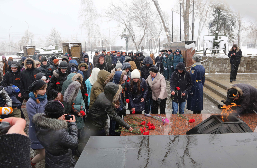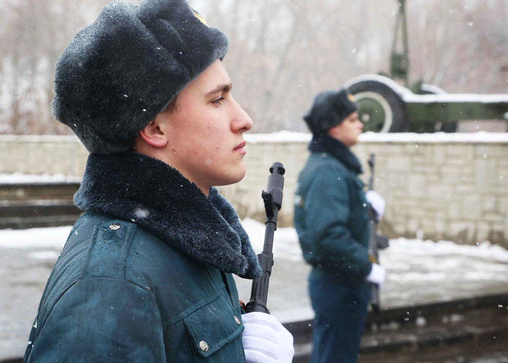 Право первыми заступить в Почетный караул на мемориальном комплексе Чижовский плацдарм, предоставлено курсантам Воронежского института Государственной противопожарной службы МЧС России: