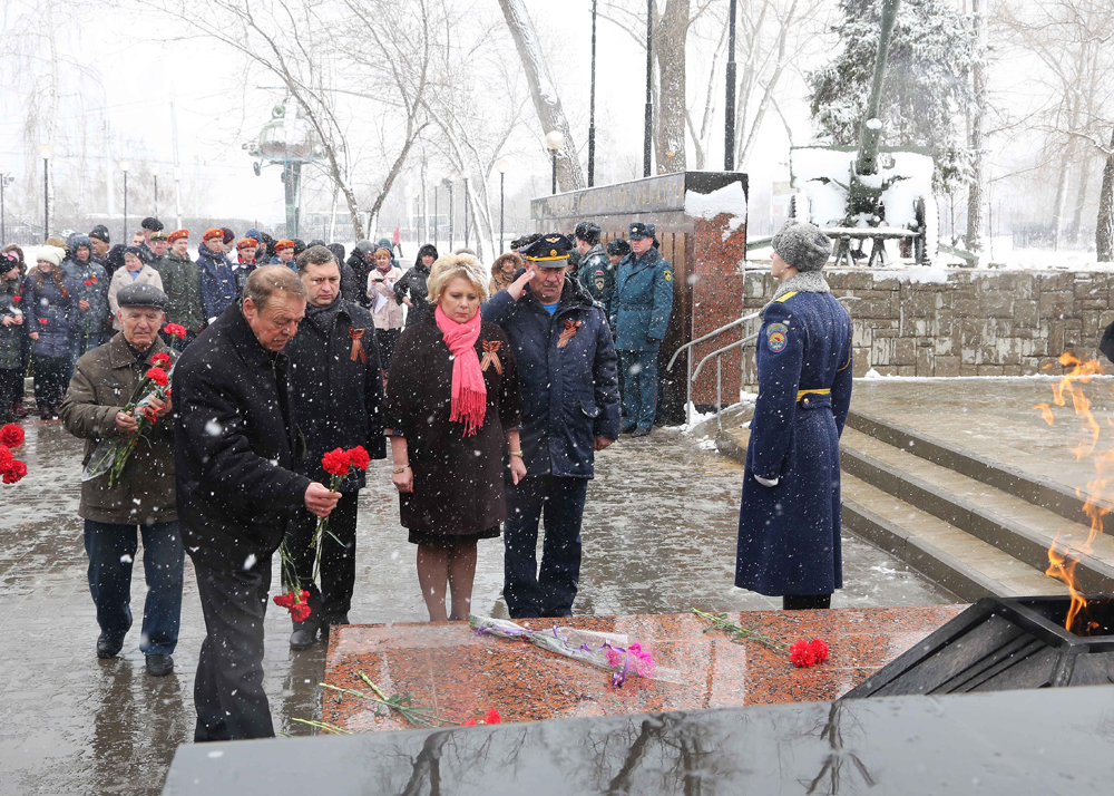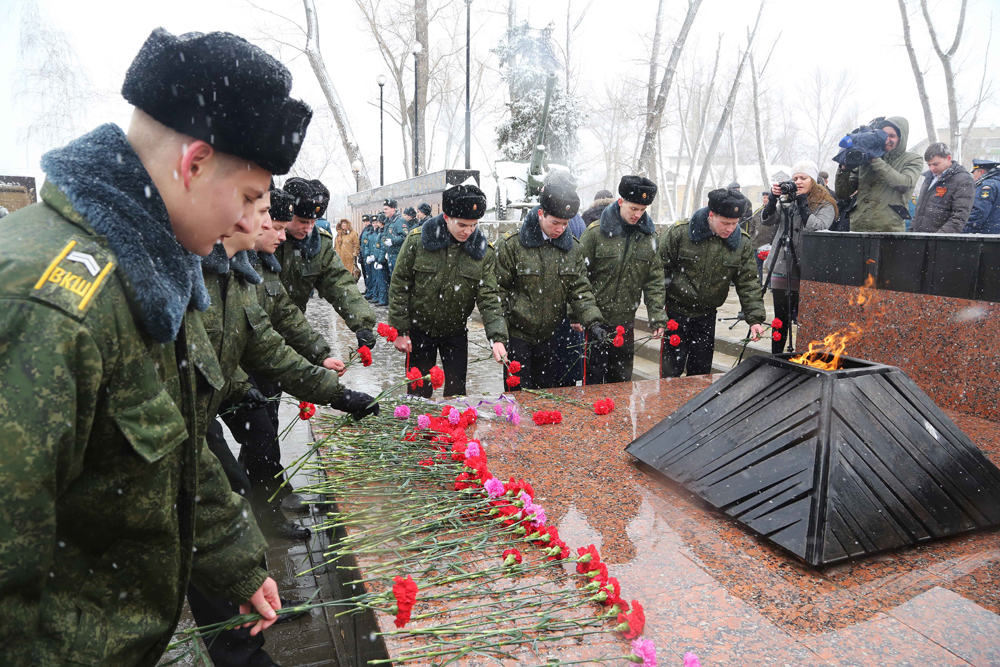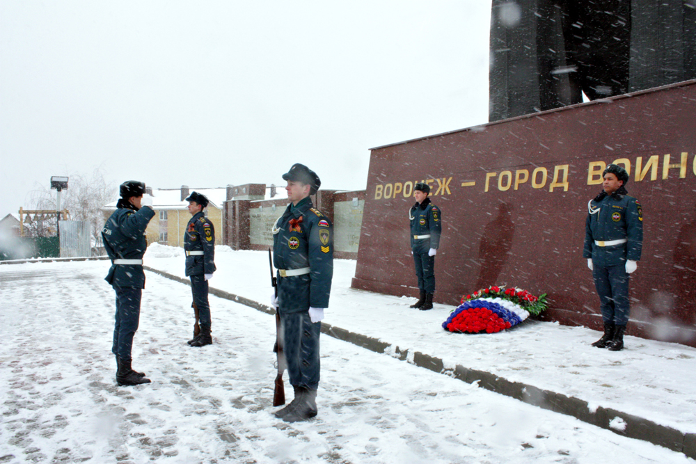 Участники торжественного мероприятия возложили венок к памятнику воинам, сражавшимся за город Воронеж. Почетный караул прошел маршем с отданием воинских почестей павшим героям.