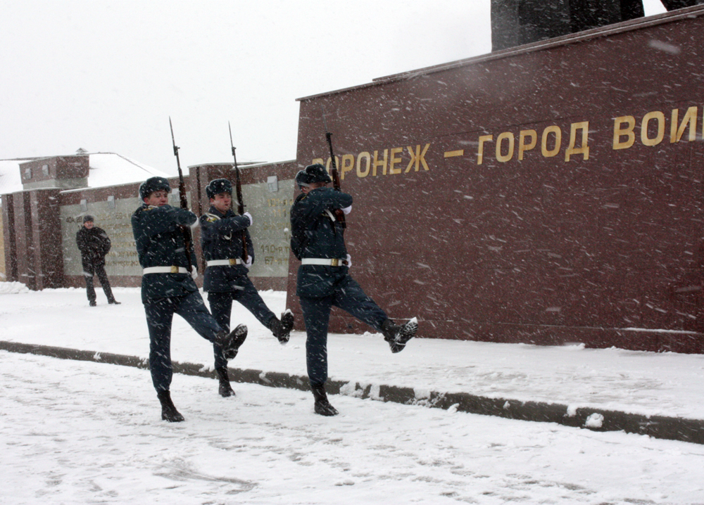 Курсанты роты почетного караула Военно-воздушной академии имени Н.Е. Жуковского и Ю.А. Гагарина первыми заняли Пост у Вечного Огня, подавая пример младшим товарищам. Затем курсантов сменили учащиеся СОШ «Центр образования №1». Стоит отметить, что право нести службу на Посту №1 предоставляется обучающимся профильных классов образовательных учреждений, суворовцам и воспитанникам военно-патриотических клубов Воронежа.