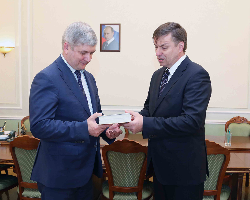 В ходе встречи Александр Гусев и Александр Головин обсудили вопросы соцподдержки отдельных категорий населения и информирования горожан о выставке, посвященной изданию этой уникальной книги.