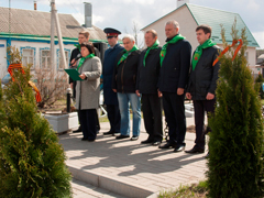 Затем учащиеся школы прочитали стихотворения и подарили цветы ветеранам. После чего состоялась высадка деревьев по периметру братской могилы.
