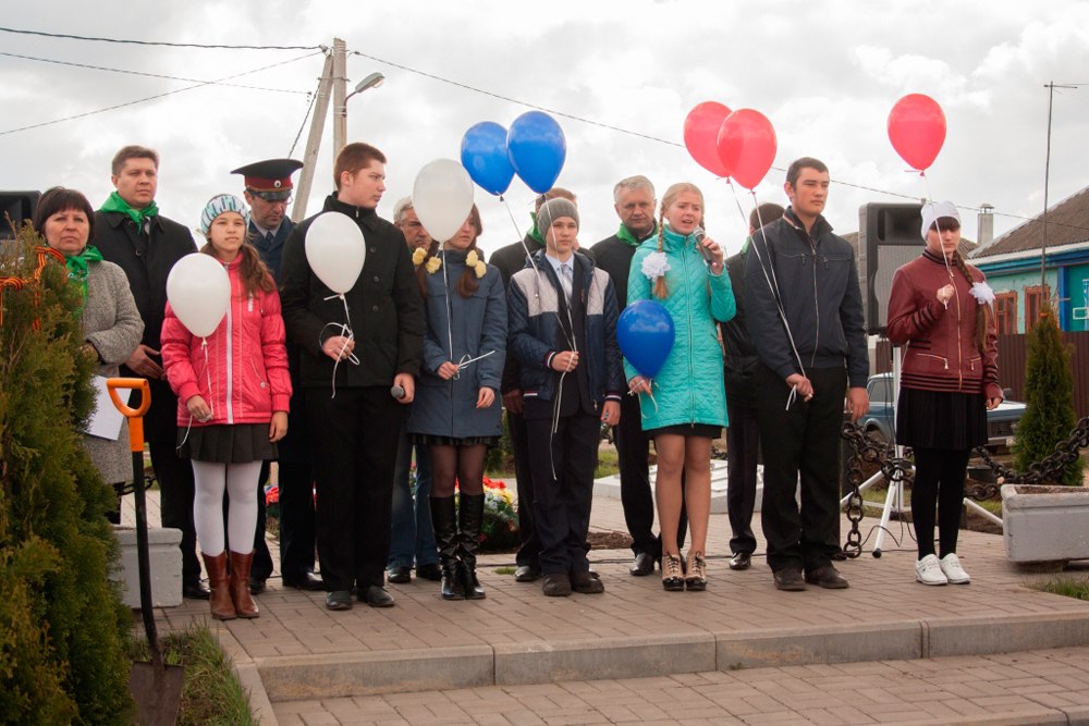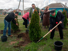 Затем учащиеся школы прочитали стихотворения и подарили цветы ветеранам. После чего состоялась высадка деревьев по периметру братской могилы.