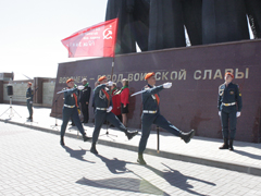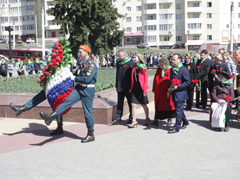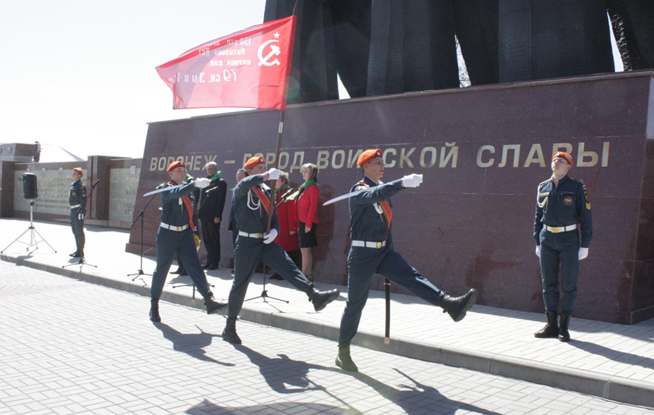 Завершилась линейка возложением венков и цветов к памятнику. Почетный караул, прошел торжественным маршем с отданием воинских почестей погибшим защитникам Воронежа.