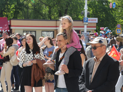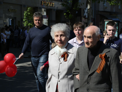 К ней со стороны улицы Парковой колонне торжественно присоединились ветераны Великой Отечественной войны. На протяжении всего шествия 40 членов военно-патриотических клубов района несли георгиевскую ленту длиной 50 метров, как знак уважения, памяти и солидарности с героическими советскими солдатами, отстоявшими свободу нашей страны в Великую Отечественную войну.