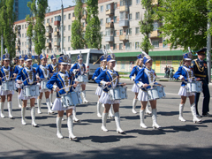 9 мая в Левобережном районе состоялось праздничное шествие – колонна членов военно-патриотических клубов образовательных организаций района во главе с барабанщицами и курсантами Воронежского института Федеральной службы исполнения наказаний РФ прошла по Ленинскому проспекту от переулка Ольховый до парка Патриотов.