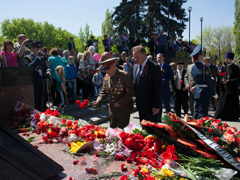 В парке Патриотов состоялся торжественный митинг, посвященный 70-й годовщиной Победы советского народа в Великой Отечественной войне 1941-1945 годов. На митинге руководитель управы Левобережного района Юрий Бавыкин поздравил всех присутствующих с Днём Победы.