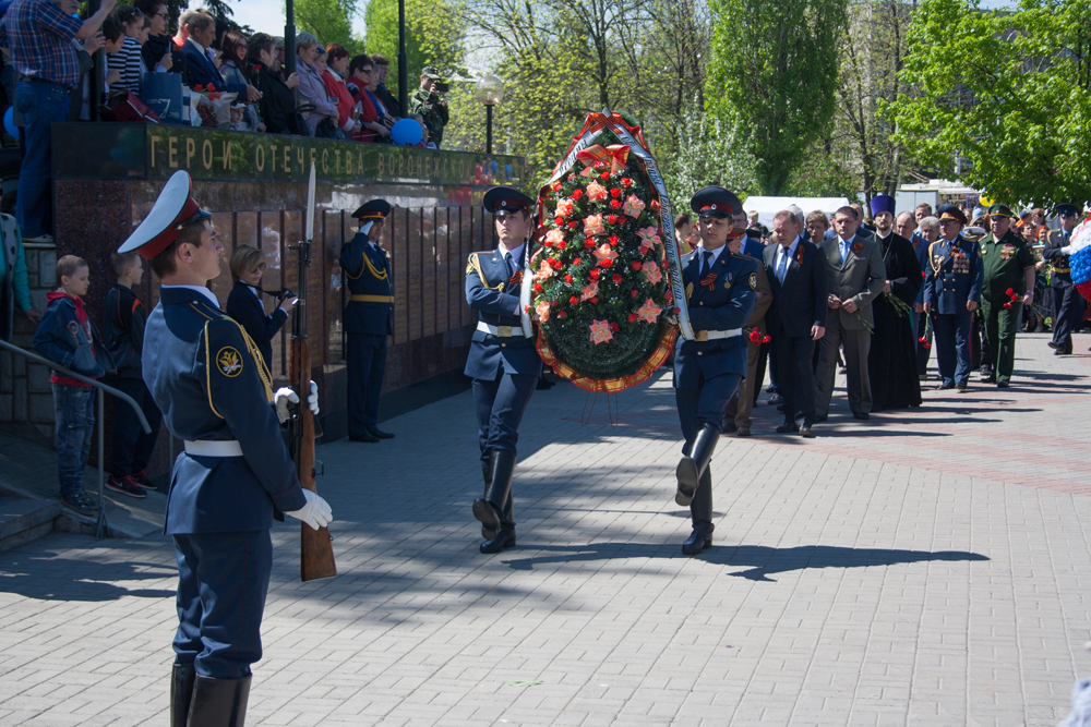 Также со словами поздравления выступили участники Великой Отечественной Войны и защитники города Воронежа Сергей Валерьевич Некраш и Иван Николаевич Осадчук, депутат Воронежской городской Думы Николай Образцов, член Всероссийского общества военных писателей Михаил Долгих, учащийся третьего класса школы № 60 Никита Пригоров и другие. Торжественный митинг завершился возложением венков и цветов к Вечному огню.