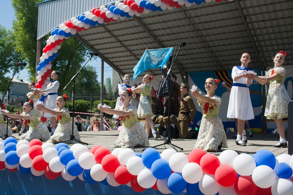 Со сцены звучали песни военных лет, музыкальные и танцевальные композиции в исполнении творческих коллективов района, занимающихся на базе Центра дополнительного образования «Созвездие» и Дома пионеров, а также школьников Коминтерновского района. Все желающие могли блеснуть вокальными данными и спеть в караоке песни из полюбившихся кинофильмов, посвященных Великой Отечественной войне.