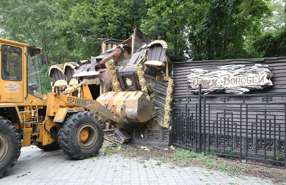 Долгожданный демонтаж кафе «Джек Воробей» начался сегодня в парке «Орленок».