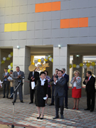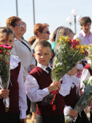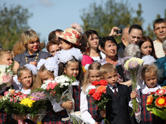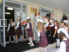 Тепло приветствовали присутствующие выступления первоклассников – малыши читали стихи о том, что еще вчера они были детьми, а сегодня уже «стали огромными». Перед тем, как распахнуть двери новой школы, к присутствующим обратилась ее директор Татьяна Григоришина. Произнося речь, Татьяна Юрьевна не могла сдержать слез: