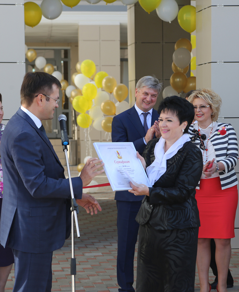 – Сегодня настоящий праздник! Ну и какое же торжество без подарков. Лучшим подарком для учителей, учеников и их родителей стала новая, современная школа, – сказал мэр. Он также вручил руководству учебного заведения сертификат на 500 000 рублей на покупку оборудования для кабинетов. – Учительский труд, труд учеников – дело нелегкое. Надеюсь, что в этой школе будут укрепляться и приумножаться достижения воронежской сферы образования. Особенно хочу пожелать удачи нашим первоклассникам. Надеюсь, что они поймут, что учиться хоть и трудно, но увлекательно.