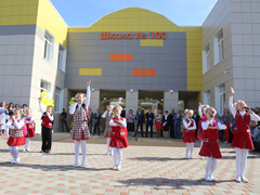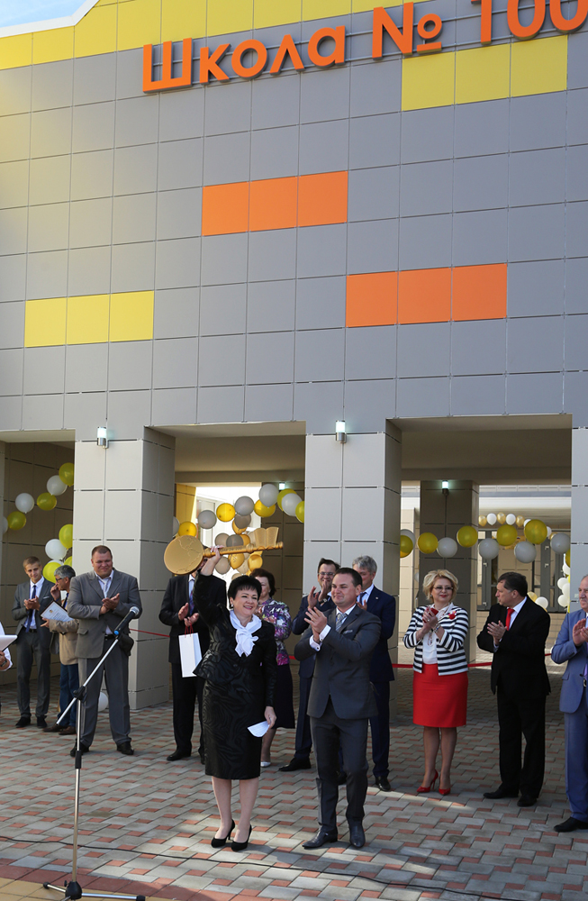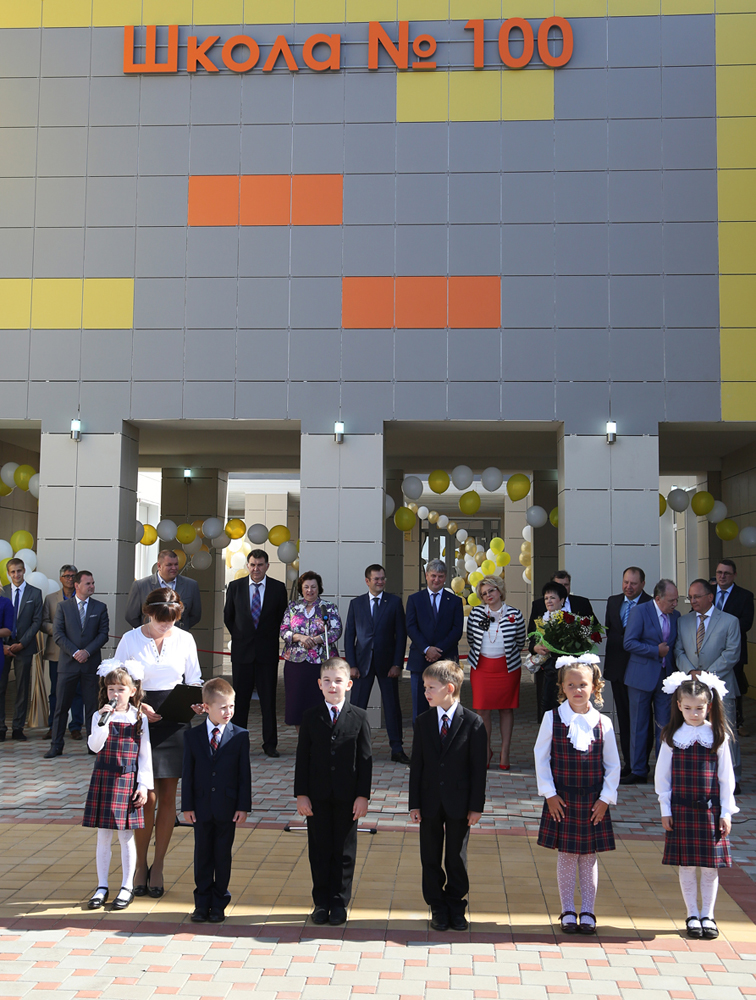 Завершилась линейка традиционным «первым звонком» и выпущенными в небо шариками. А перед этим Александр Гусев вместе со строителями и руководством школы разрезали красную ленточку, что символизировало начало работы школы №100. Первыми сюда с букетами наперевес вошли самые маленькие воспитанники.