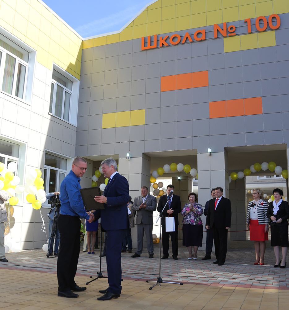 На школьных дворах пестрили букеты, играла музыка. Дети, родители и учителя обменивались пожеланиями и планами на новый учебный год. Учеников и педагогов новой школы №100 в микрорайоне Репном поздравил с днем знаний и новосельем глава Воронежа Александр Гусев. На торжественной линейке присутствовали заместители мэра по социальной и строительной политике Надежда Савицкая и Владимир Астанин, руководитель управления образования и молодежной политике Воронежа Константин Викторов, руководитель управления строительной политики Виктор Владимиров, строители, общественники.