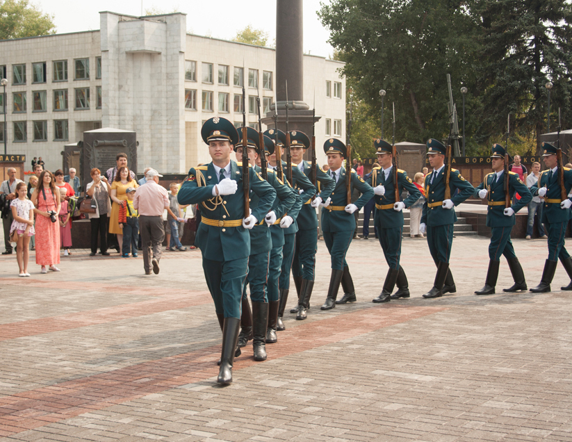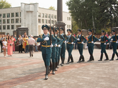 Затем в парке Патриотов состоялись показательные выступления роты почетного караула Воронежского института ГПС МЧС России.