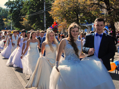 Воронежские молодожены на День города получили поздравления от мэра и прошли парадом