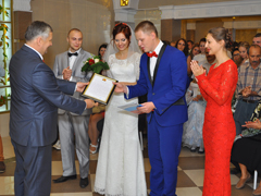 В каждом из 5 отделов ЗАГС города присутствовали руководители районных управ, которые с добрыми пожеланиями вручали новобрачным поздравления мэра.