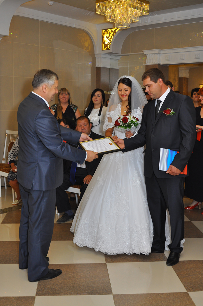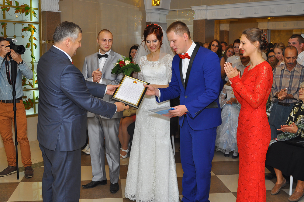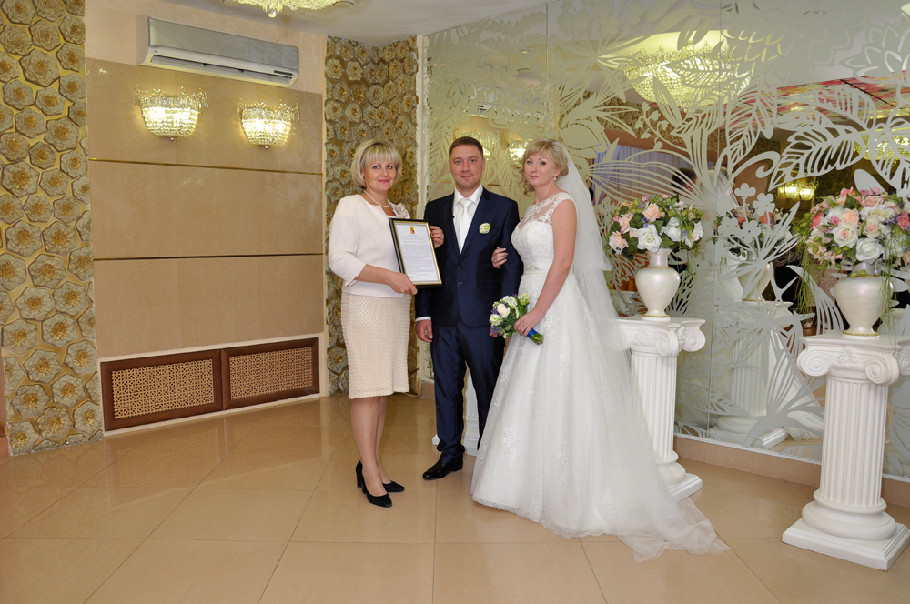 В каждом из 5 отделов ЗАГС города присутствовали руководители районных управ, которые с добрыми пожеланиями вручали новобрачным поздравления мэра.