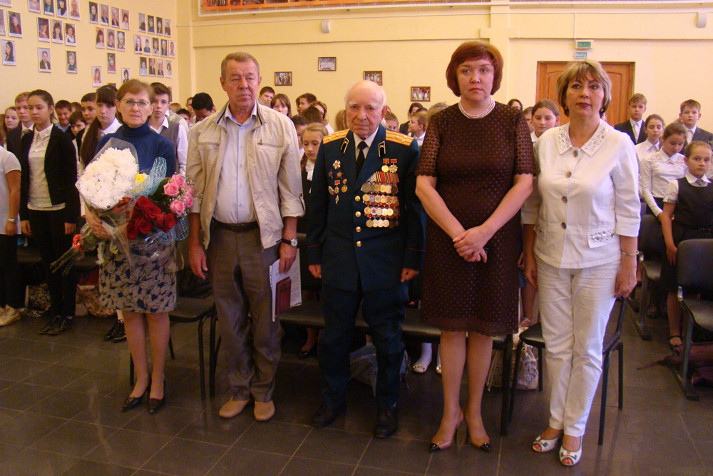 Стоя и аплодисментами приветствовали ветерана Великой Отечественной войны Николая Кузьмича Зимовца, входящего в актовый зал под звуки знакомого военного марша. С большим интересом и особым вниманием учащиеся смотрели презентацию о биографии ветерана, слушали его обращение к ним, молодому поколению 21 века.