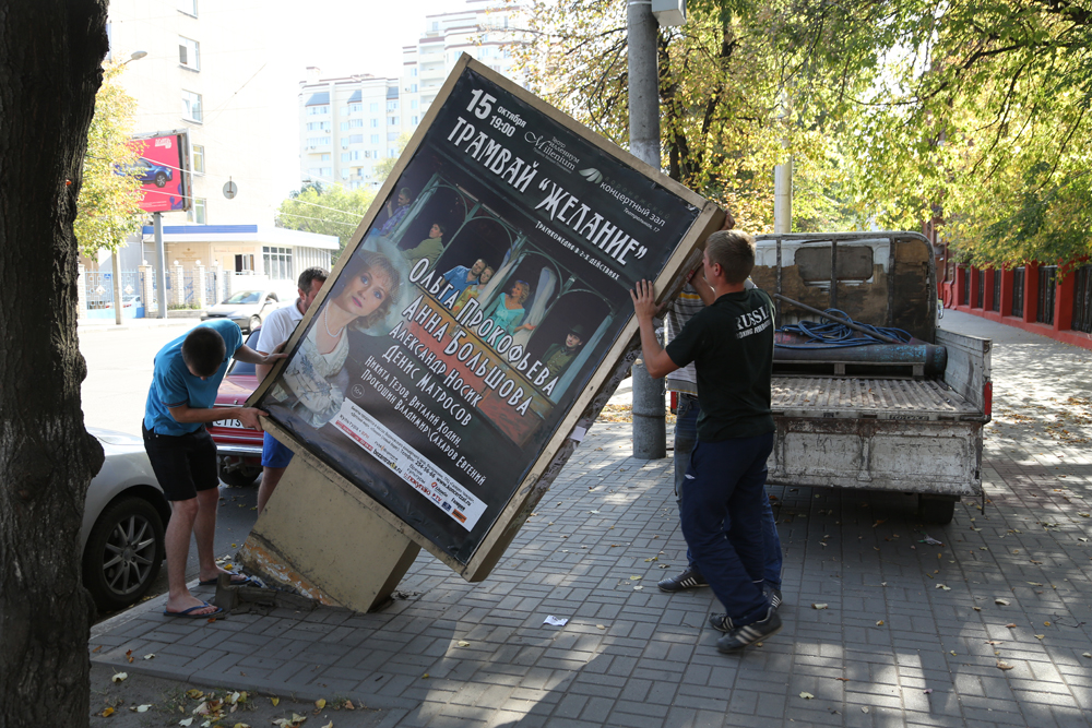 В Воронеже продолжается демонтаж незаконно установленных рекламных конструкций