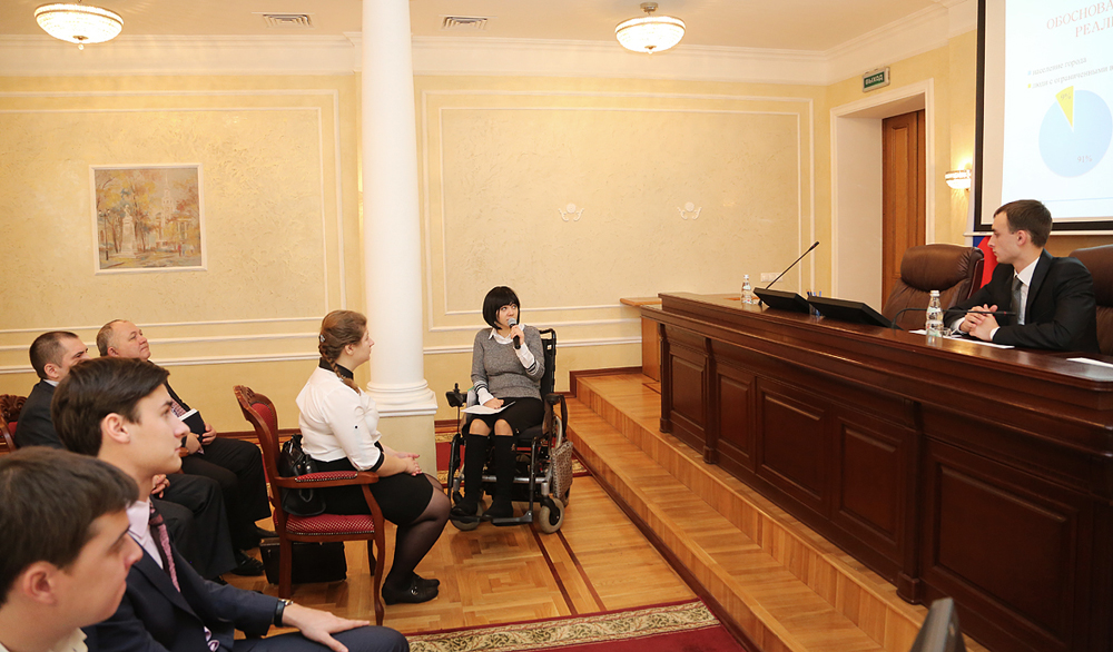 Презентацию проекта, направленного на организацию безбарьерной среды для маломобильных групп населения представила дублер руководителя управления по работе с административными органами и структурами гражданского общества Ольга Тимофеева.