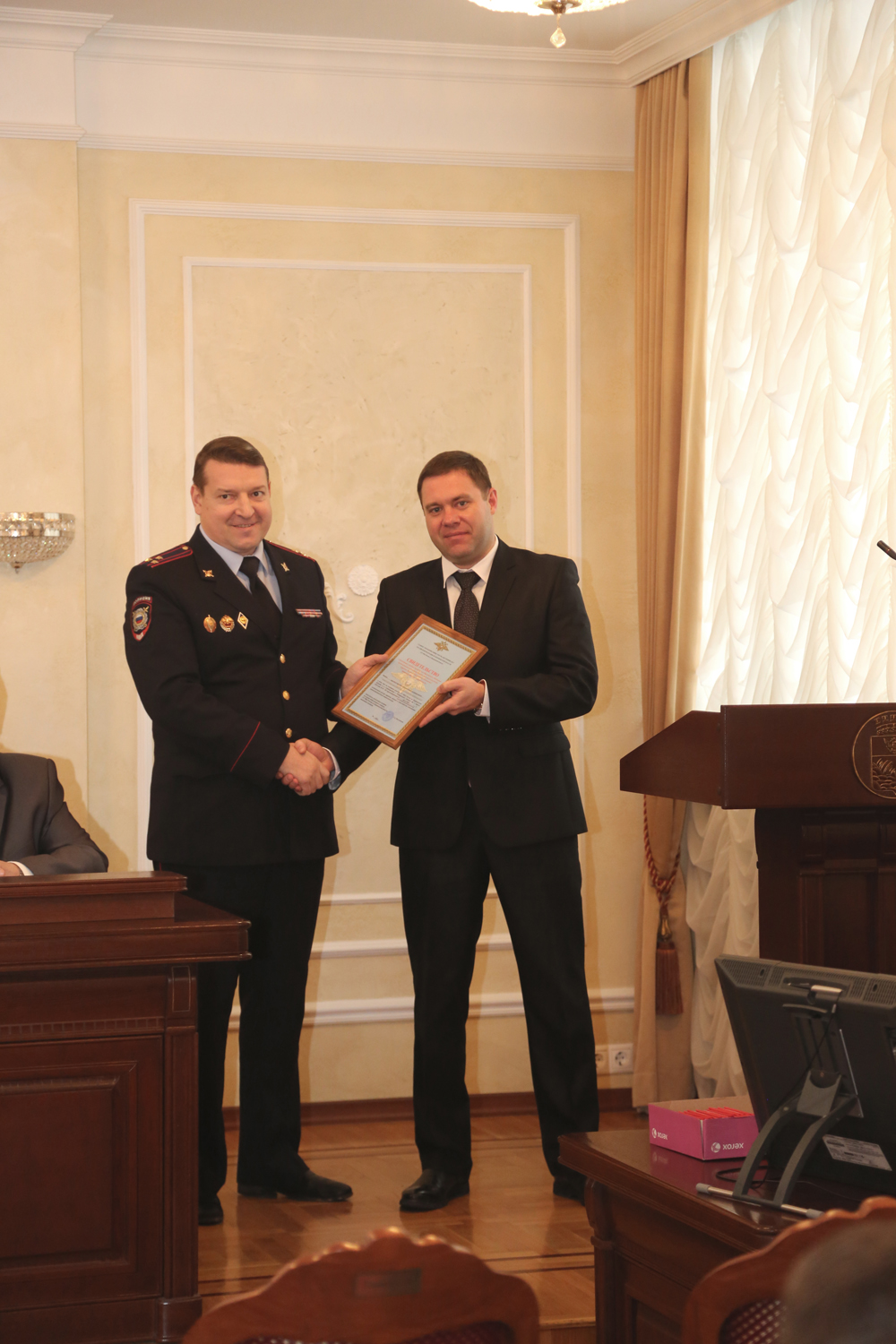 В большом зале мэрии состоялась церемонии вручения удостоверений членам первой добровольной народной дружины (ДНД), зарегистрированной в Воронеже – «Воронежский госуниверситет».