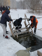 Кстати, прорубь по ул. Пляжной раньше был стихийной точкой купания и пользовался большой популярностью, поэтому в этом году сотрудниками управы было принято решение о приведении купели в полное соответствие требуемым нормам.