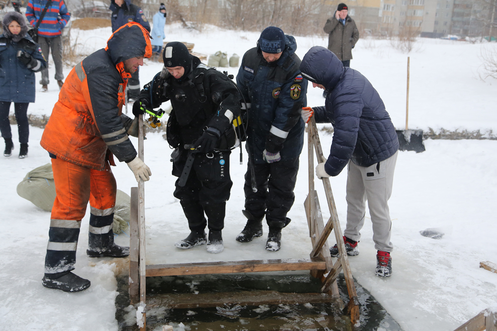 - Безопасность купающихся будут обеспечивать сотрудники управления по делам ГО и ЧС, среди которых есть и водолазы, также будет организовано дежурство скорой помощи, - рассказал заместитель начальника поисково-спасательного отряда МКУ «Управление по делам ГО и ЧС» Андрей Студенко. – В течение дня мы проверяем проруби, удаляем все посторонние предметы со дна: находим в основном бутылки, кирпичи, жестяные банки.