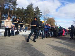 Участники проверяли свои физические навыки – спортивные команды играли в бадминтон, переносили мяч всевозможными способами, играли в своеобразный хоккей с мячом и многое другое.