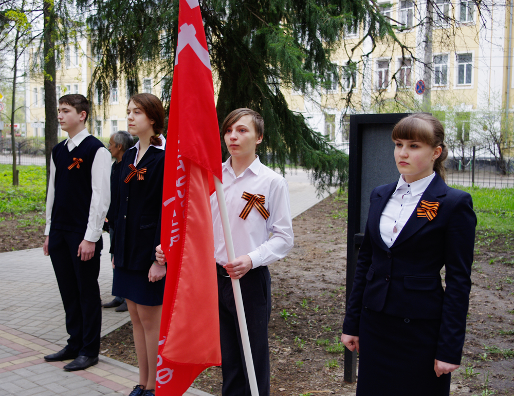 В торжественном митинге приняли участие, заместитель руководителя управы Центрального района по социальным вопросам Олег Яшин, начальник отдела образования Светлана Прасолова, председатель Совета ветеранов войны и труда, ветеран вооруженных сил Российской Федерации Владимир Момот, ветеран Великой Отечественной войны, Почетный гражданин города Воронеж, Николай Борисов, председатель Совета офицерского собрания Воронежской области, генерал – майор Олег Путинцев, учащиеся общеобразовательных школ района, педагоги и жители.