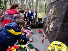 – В этот день на братском захоронении №19 мы даем обратный отсчет до дня празднования одного из самых значимых праздников в нашей истории, в военной истории нашего государства – 9 Мая - Дня победы. Сегодняшние мероприятия свидетельствуют о сплоченности нашего народа, о значимости и важности традиций, преемственности поколений. Вы, учащиеся школ, в торжественной обстановке принимаете из рук участников Великой Отечественной войны копию Знамени Победы, того самого знамени, которое в апреле 1945 года водрузили красноармейцы Егоров и Кантария над Рейхсканцелярией. И наблюдая, с каким трепетом вы это делаете, видишь, какая масштабная и конструктивная работа проделана образовательными учреждениями совместно с Советом ветеранов в вопросе поддержания и повышения уровня патриотического воспитания молодежи, - отметил заместитель руководителя управы района.