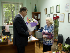 Руководитель управы Железнодорожного района поздравил директора районного центра занятости с юбилеем