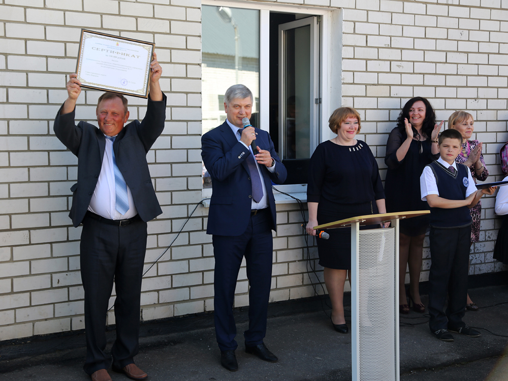 После этого глава Воронежа передал директору школы Александру Буракову сертификат на 100 тысяч рублей, а также сообщил всем участникам торжественной линейки, что в ближайшее время на территории школы начнется строительство современной многофункциональной площадки, где все желающие смогут позаниматься спортом.