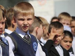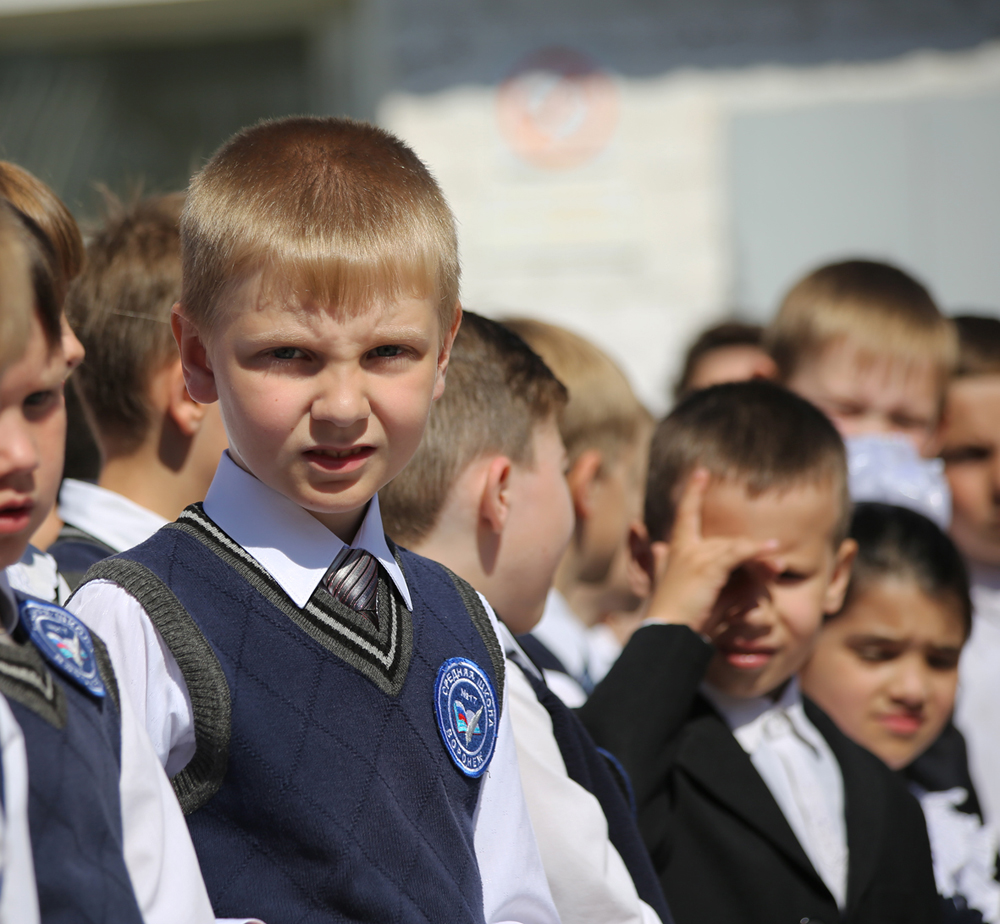 На торжественной линейке в школе № 17, которая располагается в отдаленном микрорайоне Малышево, присутствовал и мэр города Александр Гусев.